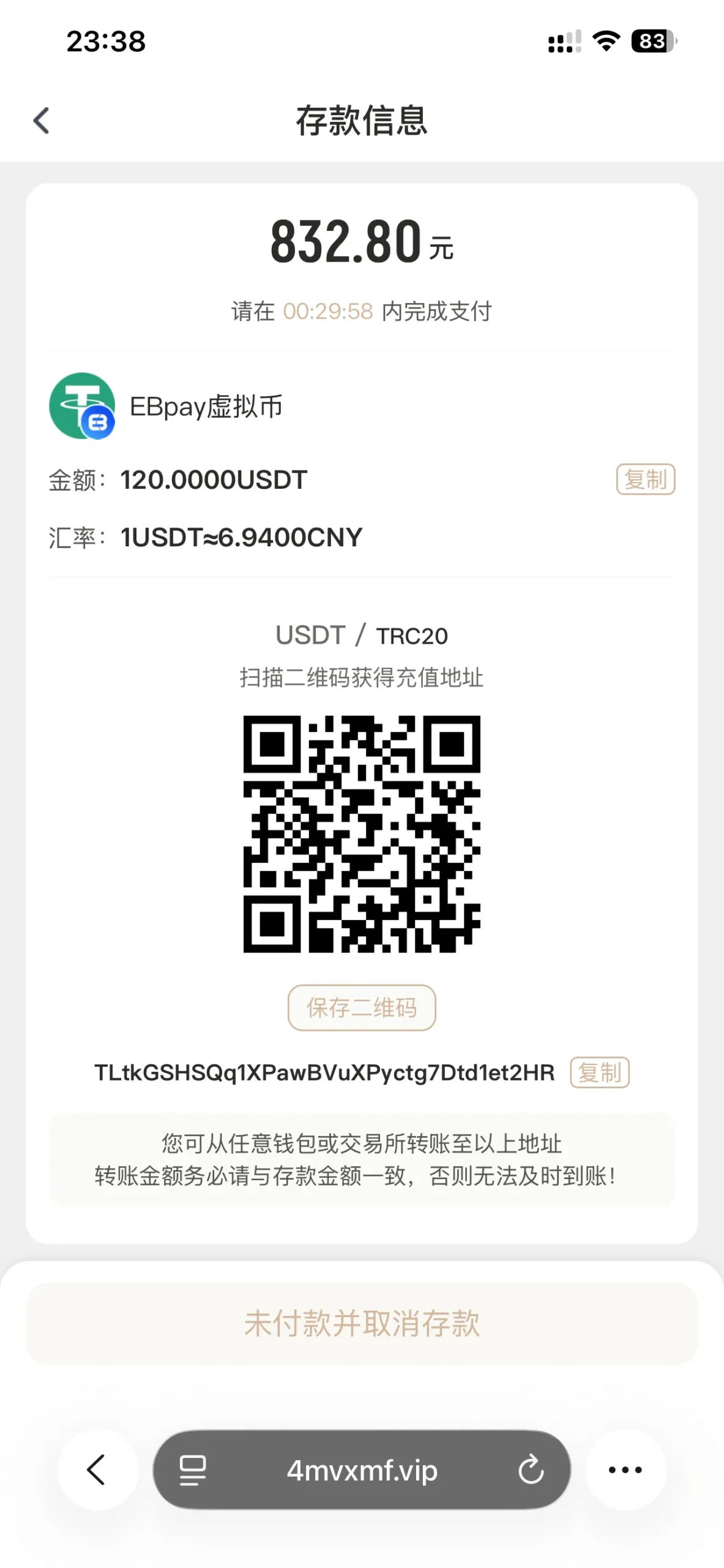 | 充值申请金额 | 120 USDT |