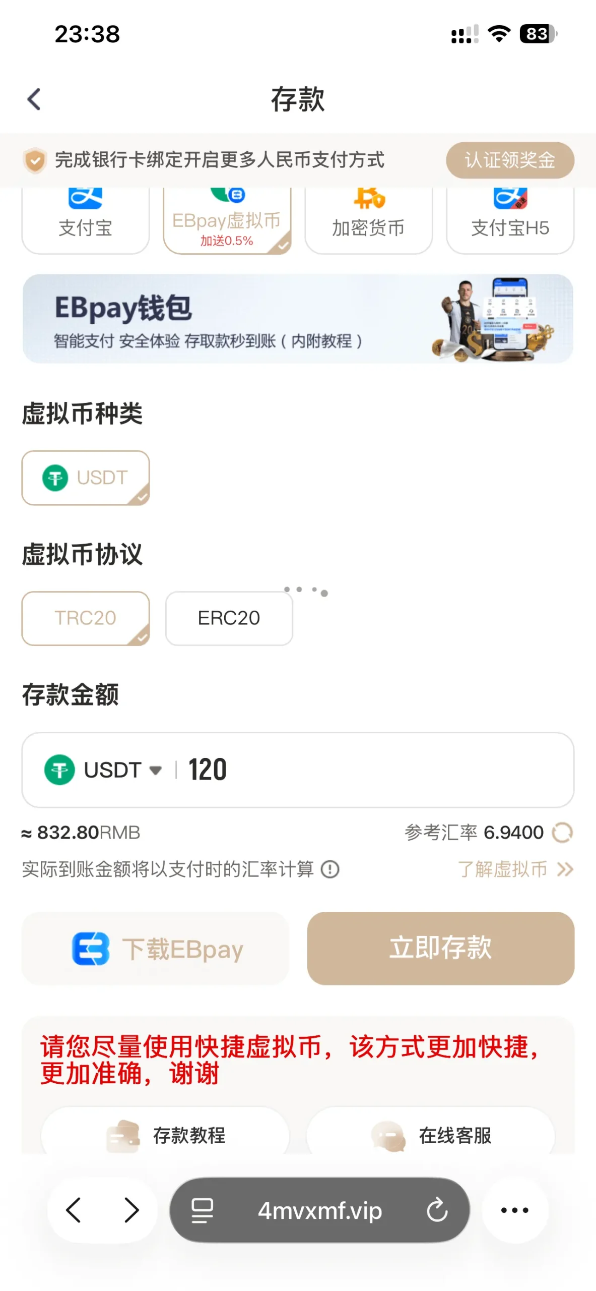 | 充值参考汇率 | 6.9182 CNY/USDT |