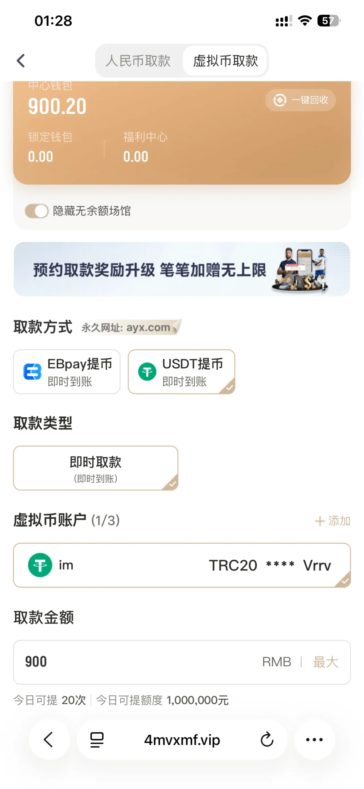 | 提款申请金额 | 900 CNY |