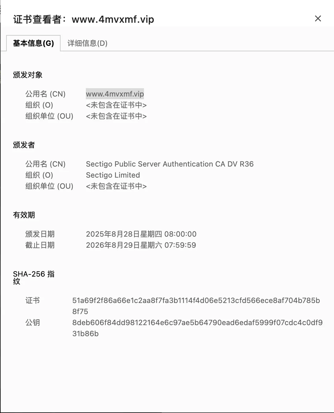 | 证书域名 | www.4mvxmf.vip |