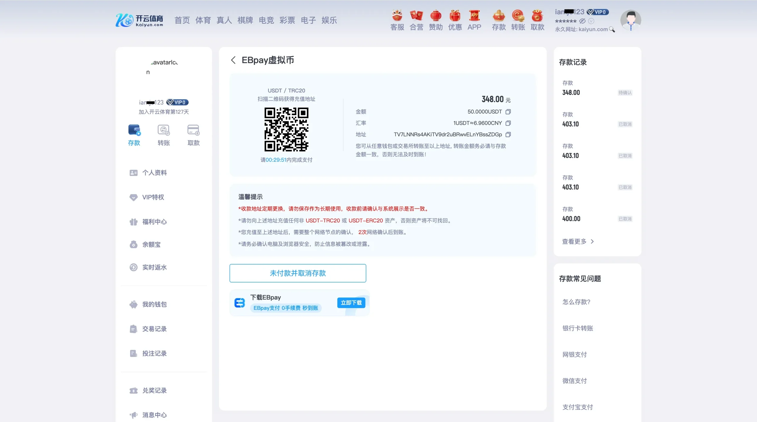| 充值参考汇率 | 6.9202 CNY/USDT |