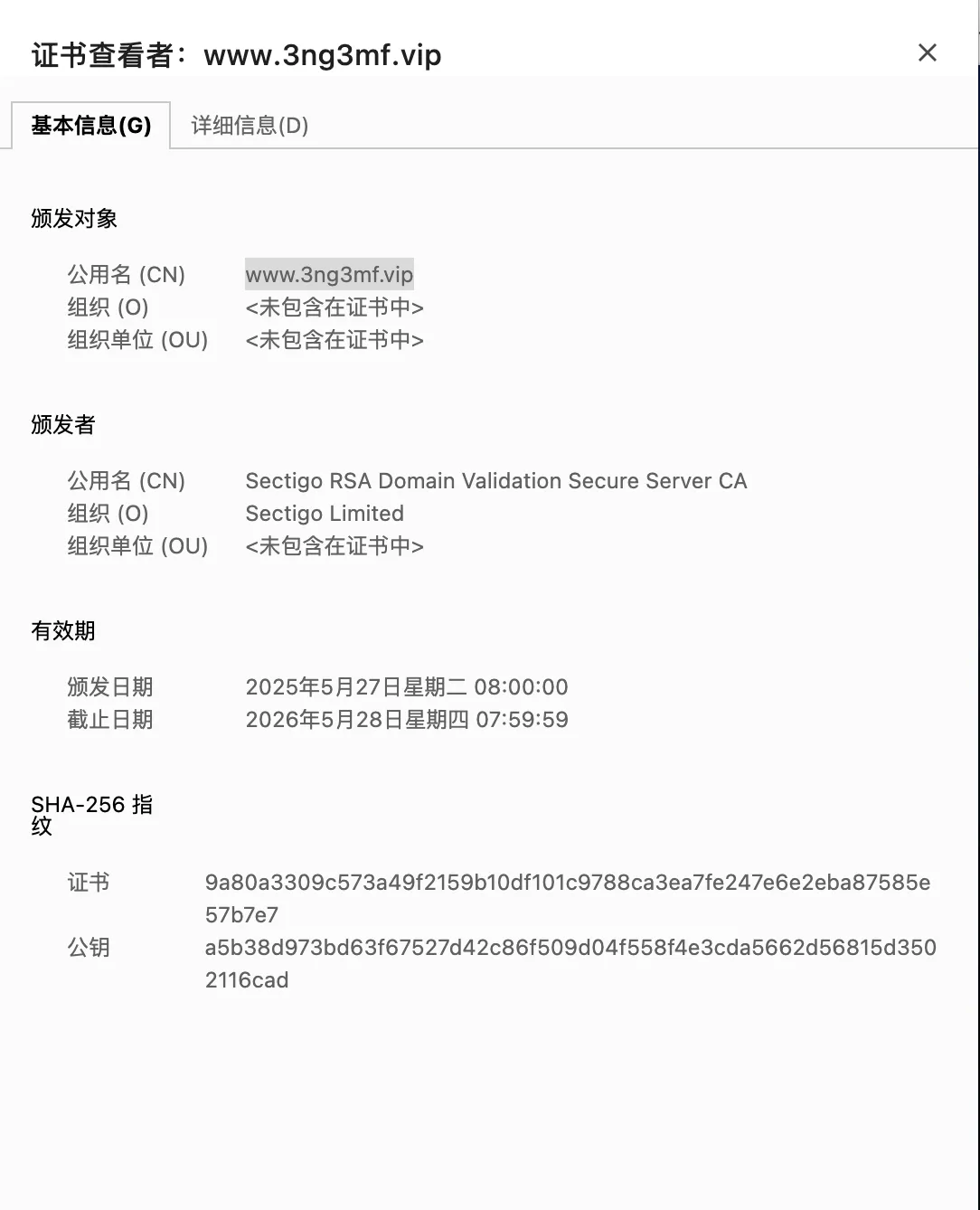 | 证书签发方 | Sectigo RSA Domain Validation Secure Server CA |