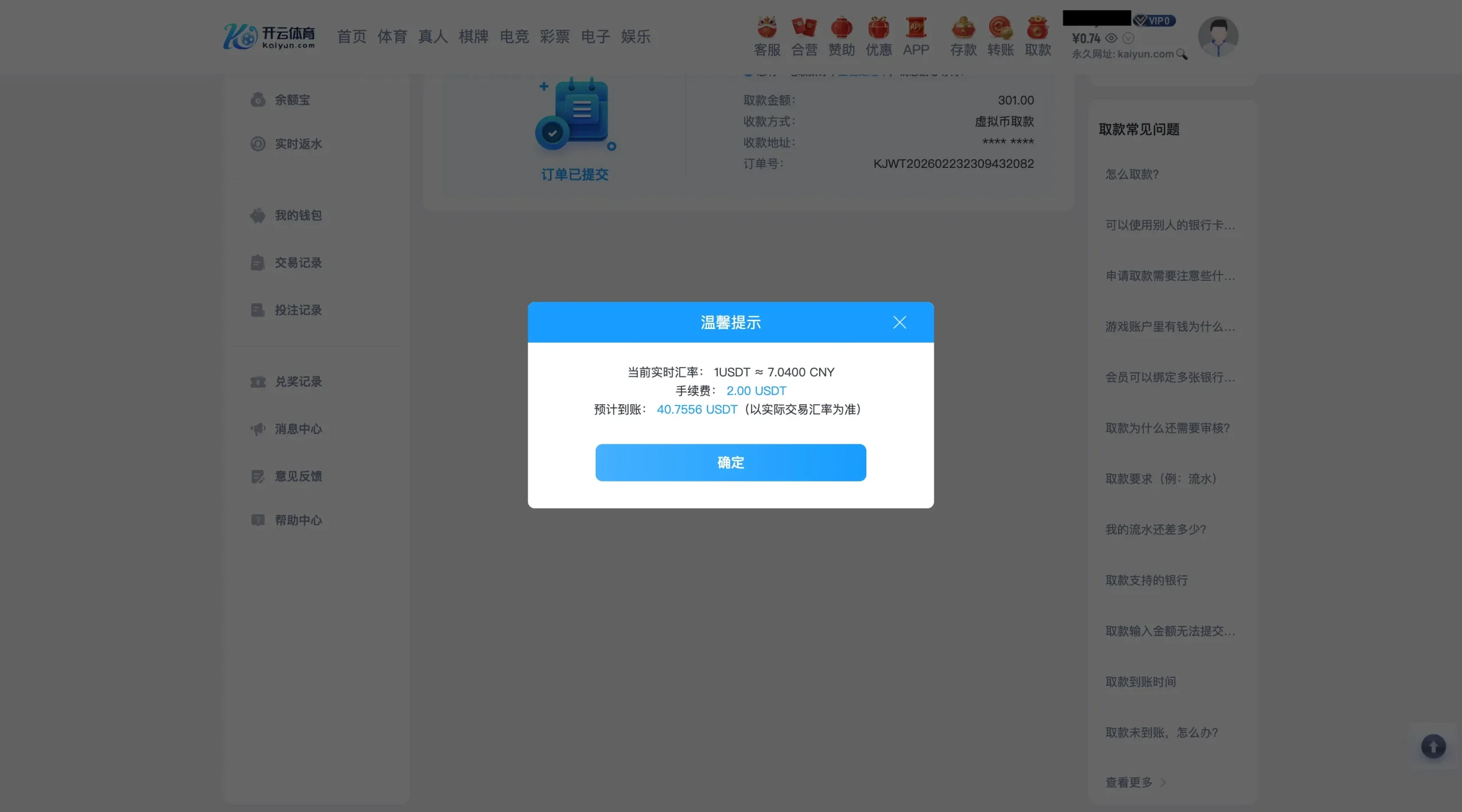 | 提款平台换算汇率 | 7.04 CNY/USDT |